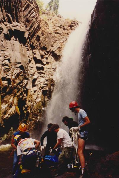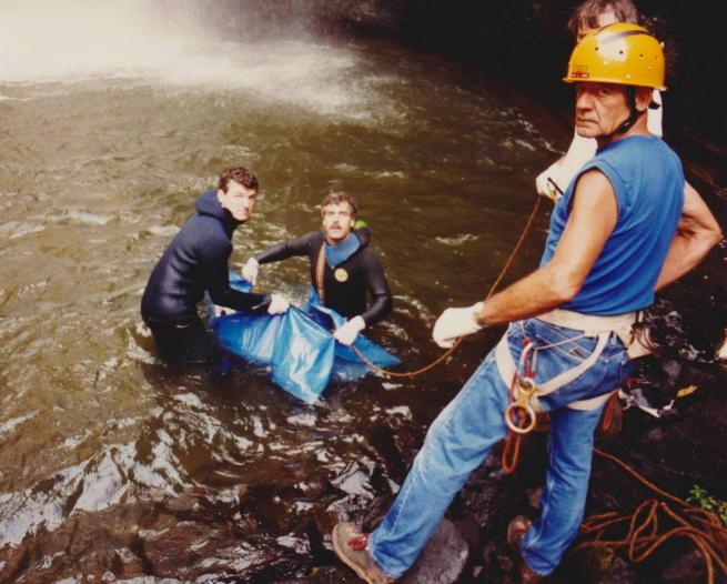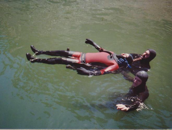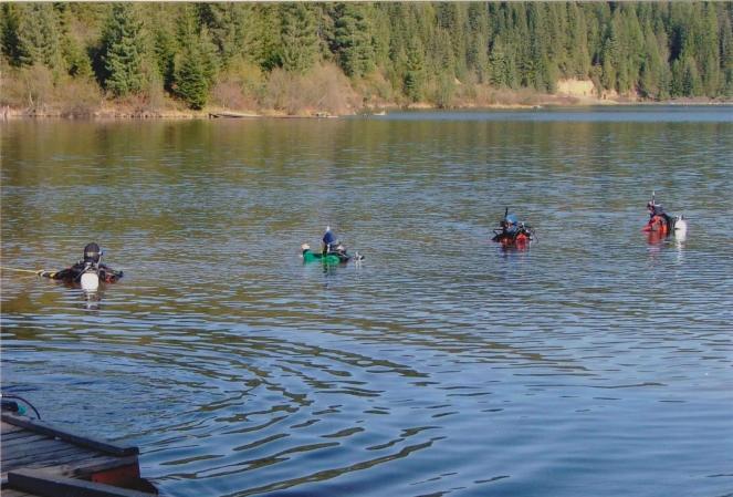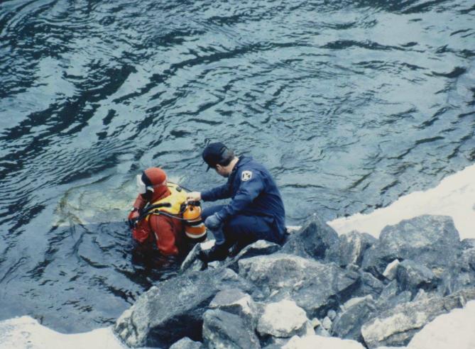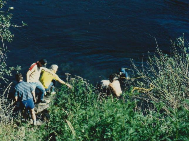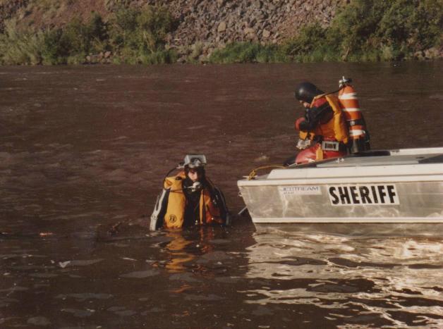 Editor's note: We all have talents we can share with our communities, but sometimes we don't know quite where to look for those opportunities. This is the fourth in a series of monthly features in local media to highlight volunteer groups in the area. The object is to let people know about them and 'What I can do to make a difference'. It's dirty job, but someone has to do it by Nancy C. Butler Most of us think of underwater being a clean, sparkling environment, but that is seldom the case for those that have been or are currently a member of the Clearwater County Sheriff's Search and Rescue (SAR) Dive Team. I interviewed several of them and they often describe the situation as being one that you can't see more than a few feet in front of your face. It is not the tropical island diving that we see on television with colorful fish swimming by. Often when the Dive Team is called out, rivers and creeks are running high, muddy and snow melt cold. Dive Team members rescue people from a drift boat stuck in the Clearwater River in Lewis County. On most of the missions they are called to, body recovery is the object. Seldom are they in a position to rescue someone that has either gone into a river, reservoir or a creek. By the time they are called out, the person has usually drowned or died from injuries in an accident. One of the more memorable incidents for several of the team was the crash of a DC3 into the Selway River in 1979. There were 12 people aboard the plane, including a pilot and co-pilot, when it took off from Grangeville on the way to Moose Creek Ranger Station. Ten of those people were on their way to work for the U.S. Forest Service for the summer. Only 2 aboard survived. Clearwater County Sheriff Search and Rescue Dive Team and Back Country Medics members worked together recover the body of a Moscow teen from Elk Creek Falls From left are: Tim Norton, Roger Burnham, Leo Dub and Tim Neumeyer. The teen had been traversing the hillside with friends when he slipped and fell into the falls and its pool about 80 feet below. From left are: Doctor Pete Crecelius, Leo Dub, Tim Norton, Tim Neumeyer, Roger Burnham and Pete Boardman. Mick Pollock remembers spending 17 days on the Selway recovering the bodies of those who were killed. It was in a wilderness area, so special permission was granted for them to cut landing zones for helicopters to transport Dive Team, Back Country Medics (then called North Idaho Back Country Medical Rescue Team) and other personnel, along with their gear, into the area for the effort. They also had permission to bring in motorized vehicles. An Idaho State Police Trooper checks out the equipment for Mike Tinsley before he dives in the icy Salmon River on a search. Notice the ice on the sides of the river. Nick Albers, who was Clearwater County Sheriff at the time, said they put a lot of effort into searching for those who perished in the crash, as they do in all their missions, for the sake of the families of those who have been lost. When you have been there, you know how important that is, he said. Sometimes Dive Team members are asked to help with special needs. Notice the tracks of the Dworshak Reservoir Log Carriage in the background. The carriage part of the mechanism had come off. Divers reattached it to the tracks and stops were installed so it would not fall into the reservoir again. Shown are divers Mike Tinsley and Deputy John Bryant. Mike Tinsley was a member of the team at the time but was not ready to go on dive missions yet. His assignment was to fill the air bottles for those who were diving. He determined that he wanted to be part of the action and the things happening with the team, so he trained to be a diver, then a dive master and took it even farther to become certified as a dive instructor. He said, "You only have to meet one distraught family on the bank to make it worthwhile." Dive team members are on the North Fork of the Clearwater River below Aquarius on a body recovery mission. Mick was one of the very early Dive Team members that even had some missions before he was old enough to be on SAR. He bought his dive gear from an uncle when he was 15 years old. His first dive was at Beaver Dam when Leroy Altmiller was Clearwater County Sheriff. After his time in the military, he returned to Orofino and was officially voted in as member of the posse (SAR). Tim Norton and Mike Tinsley participate in a Dive Masters class. Tim Neumeyer said he got involved with the team after the Selway plane crash when Mick came and asked him to join SAR. Mick knew he liked to dive and Tim decided he could help. At the time they were active in several counties in the region besides Clearwater. There were no cement barriers and few guardrails between the highway and the rivers, so there were many more accidents where vehicles went into the rivers. They were needed and that was part of the motivation. Clearwater County Sheriff's Search and Rescue Dive Team members participate in a seach on the Grande Ronde Tim said his most memorable dive as to find two Riggins girls in the Salmon River. They had been out with two boys at a senior party and their pickup went into the river. All four got out of the pickup, but the girls were not able to make it to shore, as the boys did. The Salmon was high, muddy and cold. He said you see could in the faces of the crowd how much they wanted those hometown girls found. The team found one of the girls the first day and continued to search for another day and a half but did not find the other one. She was found later down by Clarkston. Mike added that the good people of Riggins came out to support the divers however they could whether it was food, places to sleep or encouragement. Another part of the motivation was the closeness and camaraderie of the team as they train and work together. They find themselves in some pretty tight situations and have to be able to rely on one another and those filling the support roles that help the