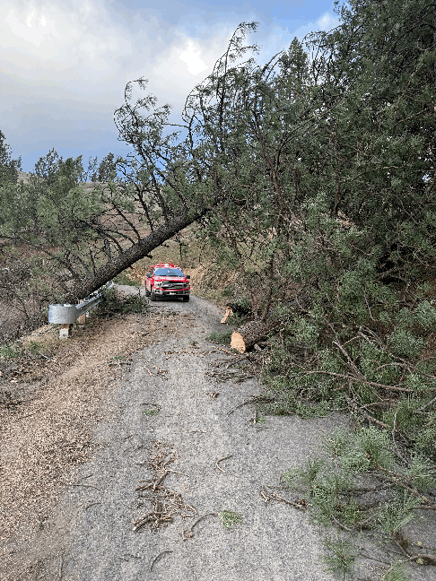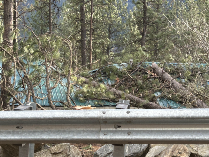 Severe wind storm causes power outages, downed trees, power lines, power poles A severe wind storm that hit Clearwater County at about 5:15 a.m. Wednesday caused closure of roads, schools and some businesses due to power outages, downed trees over roadways, as well as downed power lines and poles. According to National Weather Service-Missoula the strongest wind gust at the top of Greer Grade measured 73 miles per hour and 57 mph at Dent. Citizens recorded 36 mph off Michigan near Konkolville and 57 on Wixson Heights. Clearwater County Sheriff's Office released the following information at 3:04 p.m. Wednesday: Clearwater County was hit with strong winds starting at about 0515 this morning. Those winds knocked down trees throughout the County blocking all main County Roads and destroying power lines. The Clearwater County Sheriff's Office along with the Clearwater County Road Department have been removing downed trees all day. We have been assisted by the Clearwater Potlatch Timber Protection Association (CPTPA) along with countless citizens that have been able to help. As of now (Wednesday) 2:40 p.m. most of the main roads have been reopened although there are still places that are a one lane road due to trees on power lines. Dent Bridge Road is closed between Dent Bridge and Elk River due to the high number of downed trees. Upper Fords Creek is closed at milepost 9 due to trees and downed power lines. The wind has reduced but we are still experiencing additional trees falling into the roadways. Some trees have been broken off, and some have been completely uprooted. We know of at least six structures that have had trees fall on them with varying amounts of damage. There have been no reported injuries or trapped people. Both Clearwater Power and Avista have all of their crew working with additional crews on the way from out of the area. There are several areas without power, and it is unknown when power maybe restored. They will get power restored as they can safely do so. Check their web pages for the latest updates. Clearwater County Sheriff's Office shared these photos: |