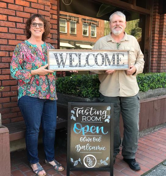 Chamber welcomes Branches and Vines to membership by Felecia McAbee In the heart of Orofino, a culinary love story unfolds as Felecia and Clark McAbee plant the seeds of their life's adventure. Three years ago, this dynamic duo embarked on a journey across Idaho, searching for a place to call home. Orofino, with its warm embrace and vibrant spirit, emerged as the clear winner. You may have crossed paths with the McAbees during their explorations, sharing in Orofino's unique charm. Strolling the streets, savoring local cuisine, and passionately supporting the Maniacs, they became woven into the fabric of the community in their hearts. Felecia, a certified Food Preservationist from Washington State University, is the mastermind behind Branch and Vines. Her commitment to quality is unwavering, and her small-batch company diligently sources the finest ingredients, including 18-year barrel-aged balsamic vinegar and award-winning single varietal Arbequina Extra Virgin Olive Oil. Sustainability is a core value, ensuring each creation is not only delectable but environmentally responsible. What began as a modest venture with just 10 products at Farmers Markets has flourished into a haven of culinary wonders. Branch and Vines now boasts a repertoire of offerings, ranging from infused olive oils and balsamic vinegars to mustards, jams, organic herbal teas, and an array of sausages, including wild boar, elk, and bison. The possibilities of exploration are endless. For those eager to embark on a tasting journey, Branch and Vines opens its doors daily, Tuesday through Saturday, from 10 a.m. to 5:30 p.m. It's an invitation to savor the rich tapestry of flavors meticulously crafted for your enjoyment. Soft opening was during Lumberjack Days week and a ribbon cutting ceremony is planned Saturday, Sept. 23. At Branch and Vines, the philosophy is simple yet profound: to bring exceptional taste to your table, create cherished memories, and inspire a league of culinary heroes known as Kitchen Conquerors. Orofino, prepare to embark on a delightful journey of flavor and discovery at 125 Johnston Ave, Suite 1, within the Helgeson Hotel. A new chapter in Orofino's culinary narrative awaits - and it promises to be deliciously unforgettable. The Clearwater County Chamber of Commerce welcomes Branch & Vines to membership, Felecia and Clark McAbee Owners. (Photo courtesy of Erica Holland, Clearwater County Chamber of Commerce) |