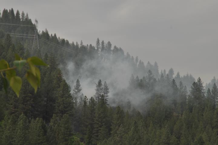 Cause of a wildfire on hill above Ahsahka under investigation Cause of a wildfire on the hill above Ahsahka Wednesday afternoon is officially under investigation, according to Tammy Davis, Clearwater-Potlatch Timber Protective Association (C-PTPA). In addition to C-PTPA, Orofino Rural Fire and Sunnyside Rural Fire Department were called out to extinguish blazes that were in two locations, one at 185 Old Ahsahka Grade and one at 719 View Point Rd. The blazes were ¼ acre and 1 ½ acres, Davis said. No structures were involved and no injuries were reported. Clearwater County Sheriff's Office assisted in the area. Below are some photos of the smoke from across the Clearwater River at Canoe Camp Historical Park: Some perspective on the location |