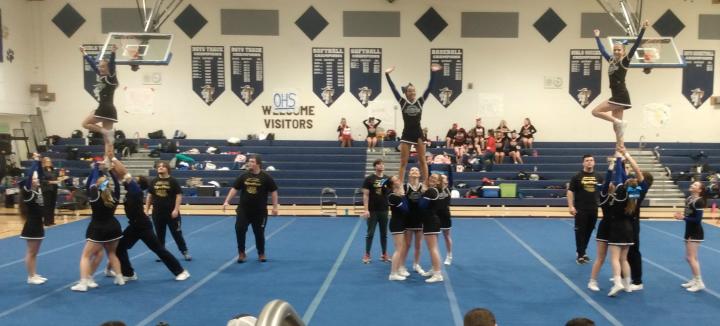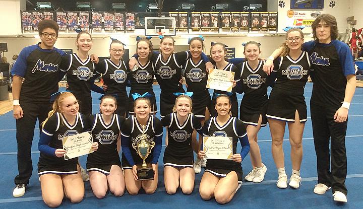 Maniac Cheer headed to state competition Info and photos by Bobbi Flowers Orofino Junior/Senior High School's Maniac Cheer is headed to State after winning the 2A District Champion title Saturday in Spirit Lake. The Maniacs competed in sideline, coed show, stunt, and pom. For the third year in a row, the Maniacs brought home the 2A district trophy placing first in sideline, show, and pom. Good job Maniacs! The Maniacs will travel to Nampa to compete in the state cheer competition to be held on February 10. Good luck at state Maniacs! Stunt Pom Show Sideline Champions |