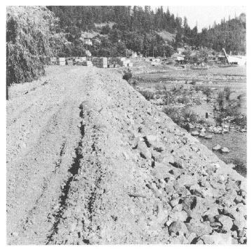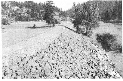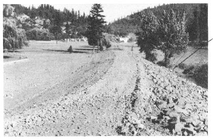 Chuck Johnson, Fairbanks, AK; Harriet Reece, Cavendish/Lewiston and Kay Mathews DeFrancisco, Rathdrum; are our winners! The levee around the City Park is the answer for Week 243 of Orofino History Trivia a special feature to celebrate the history and heritage of Clearwater Country. Join in the discovery! Monday: Water problems Tuesday: Orofino Wednesday: Changed the hydrolics Thursday: Added to previous work Friday: U.S. Army Corps of Engineers project Saturday: Completed in June 1949 According to Herb Bessey, Levee Regional Manager for the Walla Walla District U.S Army Corps of Engineers, the Orofino Flood Control Project was constructed under the authority of the 1946 Flood Control Act following the extreme flooding of 1948. The project was awarded to Thurston Storey of Lewiston.and work was started May 3, 1949. It was completed June 20, 1949. The project consisted of a levee, constructed of small basalt rock and clay. The river side of the levee was rip rap quarried river rock. It was 10 feet wide at the top. The combined length of the several contiguous sections of the levee is approximately 1,465 feet. The toe of the center section of the levee, approximately 950 feet in length, is protected by a cemented rubble flood wall that existed at the time the project was built. The levee is maintained by the City of Orofino and inspected by the Corps on a regular basis. A cement walkway was built across the top in the 1990s and George Korbel, as his Eagle Scout project, managed the building of steps from the walkway to the river in recent years. Looking upstream on the construction. The tree in the right foreground is approximately the terminal point of 250 feet of completed work on Section B. This photo looks upstream on the land side of completed Section B. The arrow points to a culvert. This photo looks upstream showing Section D type construction placed against the existing rubble wall along the Clearwater River. This is the landward side of approximately 1090 feet of Section D type construction. Sponsored by: