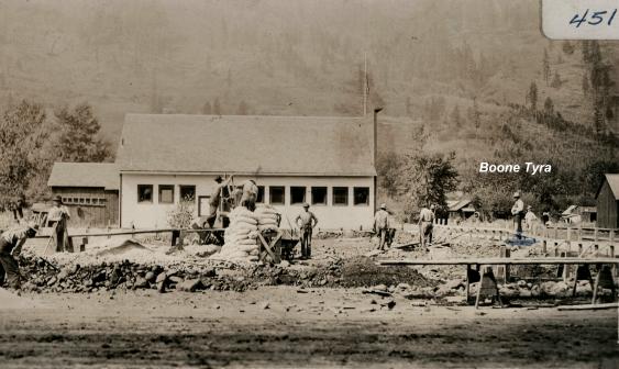 Harriet Reece is the winner! Daniel Boone Tyra is the answer for Week 331 of Orofino History Trivia a special feature to celebrate the history and heritage of Clearwater Country. Join in the discovery! Tuesday: Born in Kentucky Wednesday: Concrete contractor Thursday: Employed as a lumber worker earlier in his life Friday: He and his wife celebrated their golden anniversary the year before his death. Saturday: Worked to construct the Jones Building on Johnson Ave. in Orofino. Daniel Boone Tyra was born in Powell County, KY on Jan. 19, 1876 and married Ollie Merffert on Nov. 30, 1902. They came to Orofino from Wisconsin in 1909. He was employed for a time as lumber worker before going into the construction and contracting business. He was particularly know for his concrete work and was involved in construction of the Jones Building in the 200 block of Johnson Ave. in Orofino. Tyra lived in Orofino for 44 years before his death at the Orofino hospital in January 1954. He and his wife had celebrated their golden anniversary the year before he passed away. Top photo--Boone Tyra from a pioneer photo of about 1940. Second--The photo was taken from across the street in front of the Burns Building, so Johnson Ave. is in the foreground and College Aven. is on the right. Boone Tyra is standing at or on the fence on the right supervising the preparation for the building of the Jones Building in 1915. Sponsored by:
